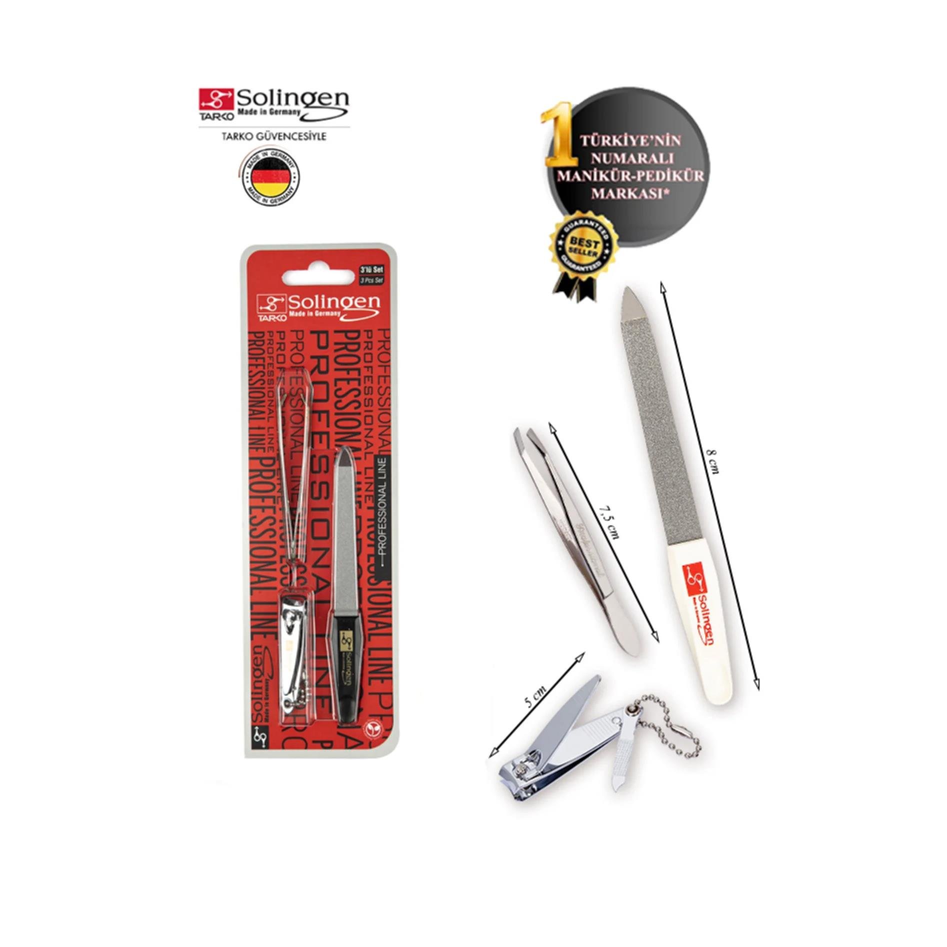 Kusursuz bakım artık daha kolay! Solingen 3108 3’lü Set, Alman çeliği kalitesiyle günlük kişisel bakım ihtiyaçlarınıza profesyonel çözüm sunar. Estetik tasarım, maksimum dayanıklılık ve pratik kullanım bir arada.